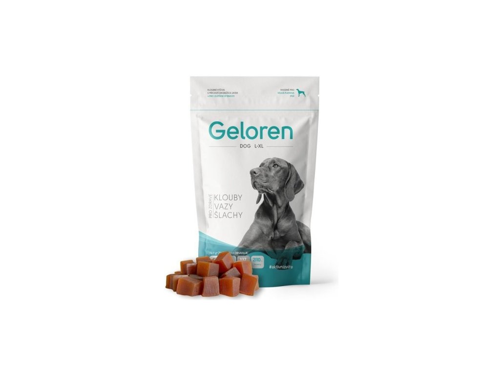 Geloren dog L-XL ve formě ochucených žvýkacích kostek je určený pro velká plemena psů. Napomáhá regeneraci kloubů u řady pohybových problémů. Slouží také jako prevence pro prodloužení aktivního života psa.