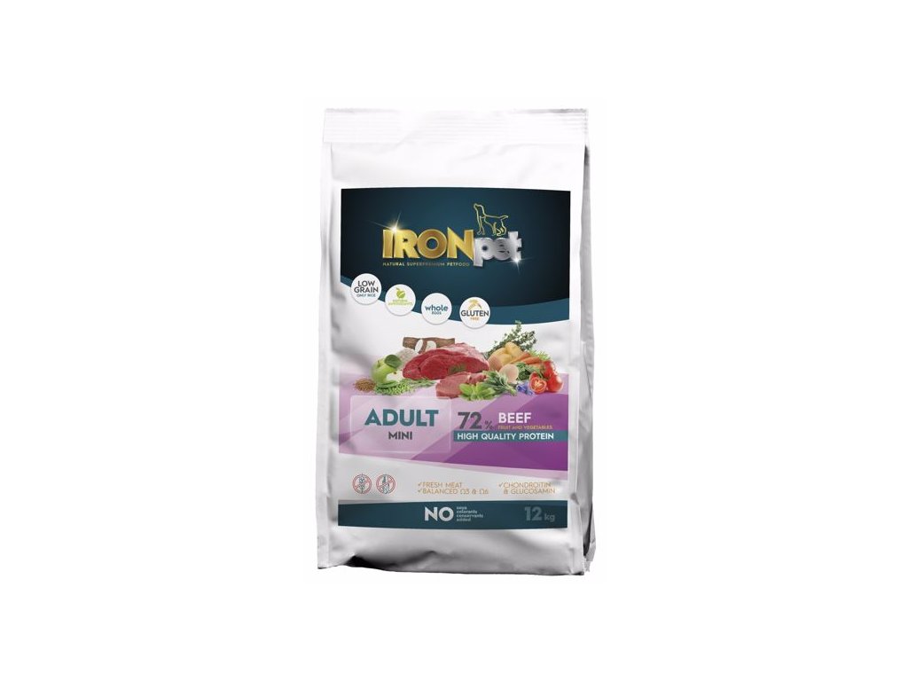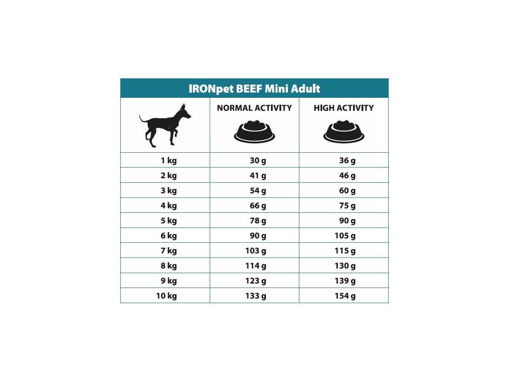 IRONpet BEEF Mini Adult je kompletní krmivo bez obsahu lepku a kuřecího masa pro dospělé psy malých plemen. Obsahuje 45% kvalitního hovězího masa.