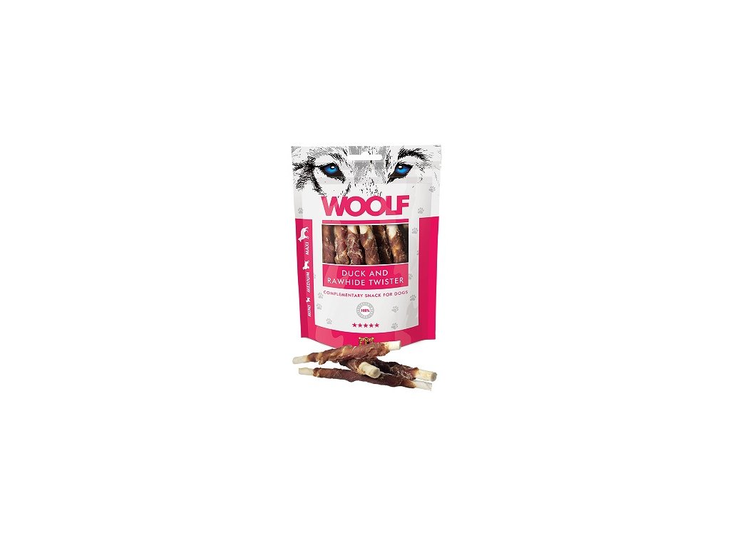 WOOLF pochoutka Duck and Rawhide Twister 100g