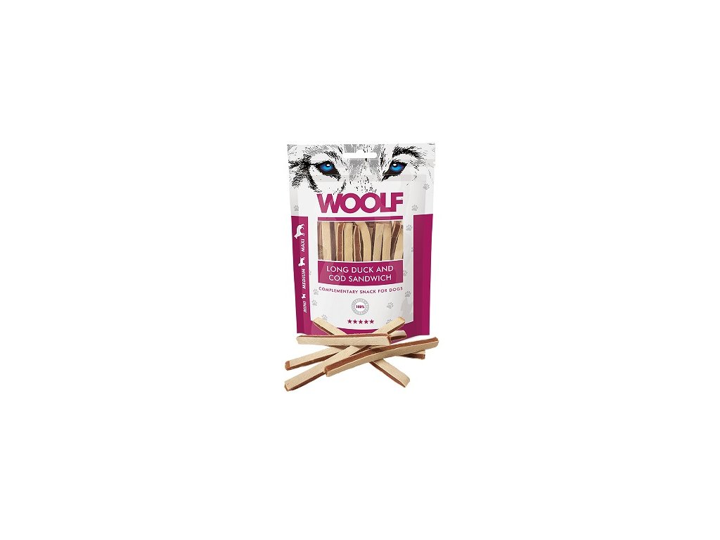 Dlouhý měkčený a velmi chutný pamlsek z kachního masa a tresky pro všechna plemena psů. Díky svému tvaru by měla vašeho psa zabavit na delší dobu. Pamlsek je měkký a vhodný jak pro dospělé psy tak i štěňata a starší psy. Pochoutky Woolfsnacks jsou speciálně navrženy pro psy všech plemen. Při výrobě jsou ze 100% použity bílkoviny té nejvyšší kvality pro co nejlepší příjem potravy. Veškeré pochoutky Woolfsnacks, jakmile se vyrobí, jsou zabaleny bez chemických přísad, konzervačních látek, nebo barviv. K zajištění ochrany je do sáčku umístěn absorbér kyslíku. Balíček je opatřen zipem pro opětovné uzavření. Nekonzumovat okysličovadlo.